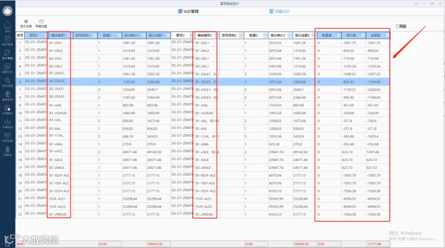 每项箱柜数量差报价差一目了然