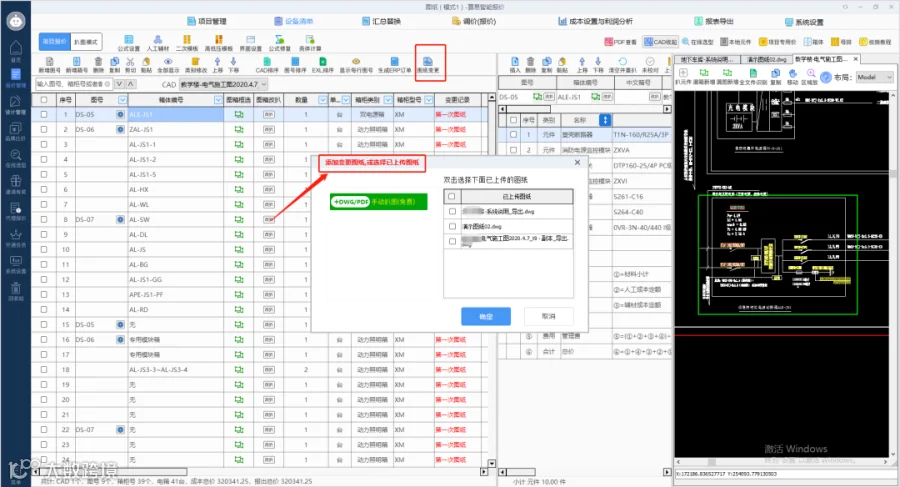 查看旧报价和旧图纸。