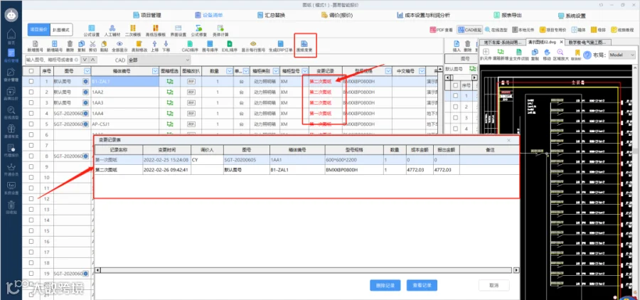 每一次的图纸都可以在变更明细表中