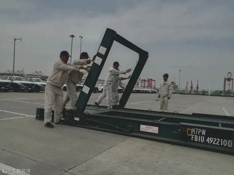 本次演练模拟商品车装车现场作业人员进行装车作业,在抬起商品车专用框架中的门字架时,因疏忽大意操作不慎,被翻下的门字架时砸到脚踝。