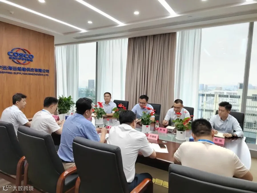 交流座谈中,林远平回顾两家公司业务长期合作情况和成果,介绍了供应公司融入特运"双核双链"战略,创新经营取得新成效。吴继荣副书记介绍供应公司在党建工作、疫情防控和安全生产方面工作情况。黄余华总经理介绍中远海运物流的改革发展和经营战略,双方探讨发挥各自优势资源,加强协同深化合作,一致认为,供应公司和中远海运物流供应链(广州大区)有良好的业务合作传统,互信互任,对进一步深化业务合作协同充满信心。双方在服务船东、港航联动、工程物流,船舶供应等多个业务领域合作达成共识,并计划在近期签订进一步合作框架协议。