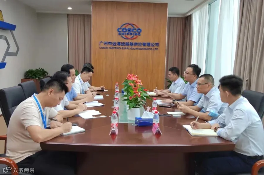 中远海运物流供应链有限公司(广州大区)副总经理周锋、综合事务中心综合管理室副经理郑帆,中国广州外轮代理有限公司(华南区域)船务部总经理李洪琨,供应公司总经理助理方镇铭、代理/物流部经理林志鹏、绑扎项目部副经理欧炎忠等参加了会谈。