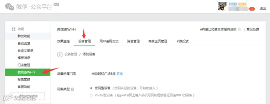 (使用方式:1.准备一台常见WIFI路由器。2.登陆微信公众号官方后台mp.weixin.qq.com。3.检查门店管理中的门店是否有设置,没有设置的新增门店。4.微信连WIFI功能中选择门店添加设备。5.修改WIFI路由的网络名和密码。6.下载打印WIFI二维码贴到合适的位置)