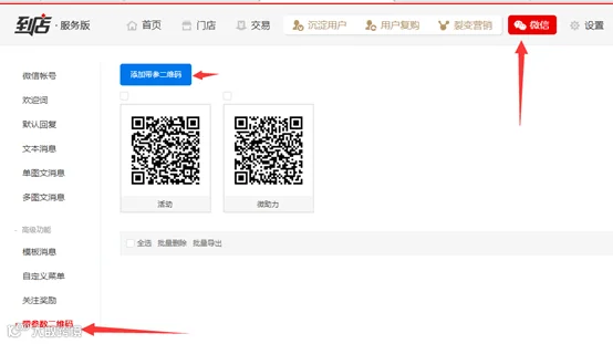 商户设置好对应活动之后,在微信-带参数二维码中即可生成活动二维码。
