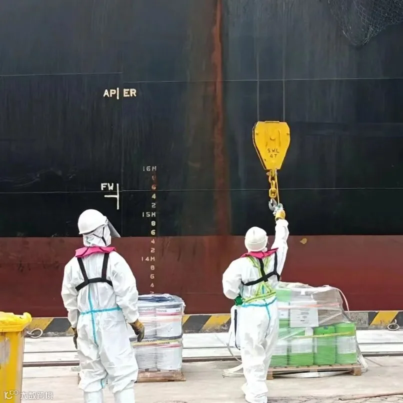 作品介绍:在太仓码头,为完成“智慧轮”利用可折叠商品车专用框架运载1100多台商品车任务,绑扎项目部的同事在毫无遮盖的烈日下忙碌着。