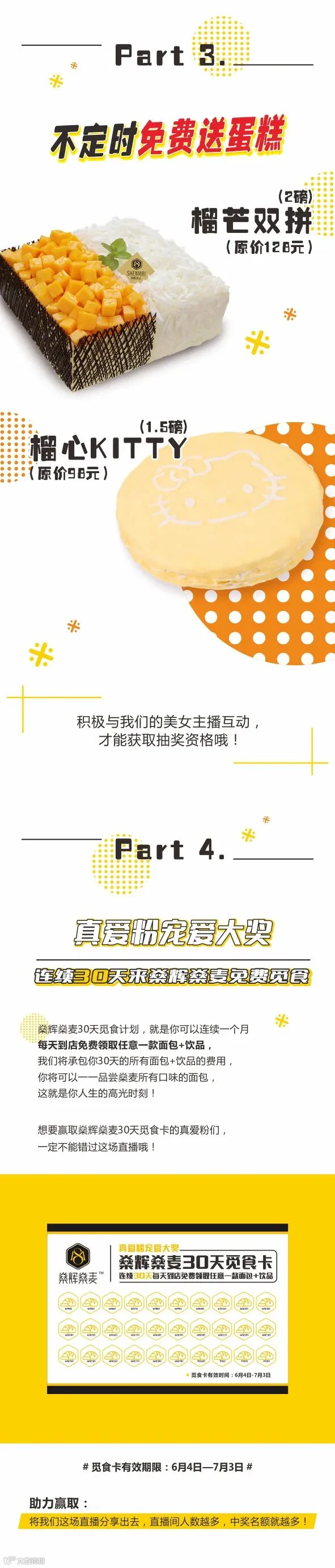 30天免费早餐觅食特权+2000份1元秒杀+免费蛋糕,等你来抢!
