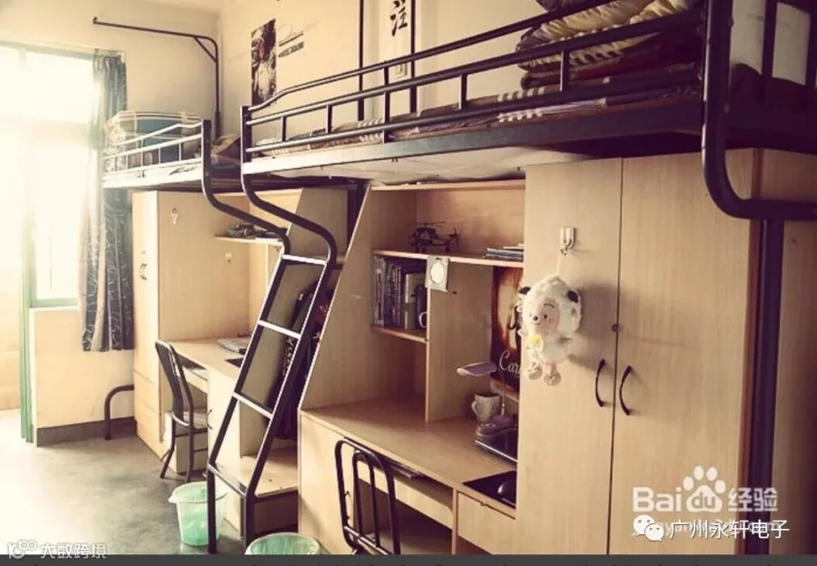 1.首先要温馨说明一下,笔者所要讲的解决方案只适用于只有上铺的寝室。如果你的寝室是上下铺的话,最好不要采用这个方案,因为下铺的同学可能会不高兴哦。如果不太清楚,可见下面适合的寝室例图。