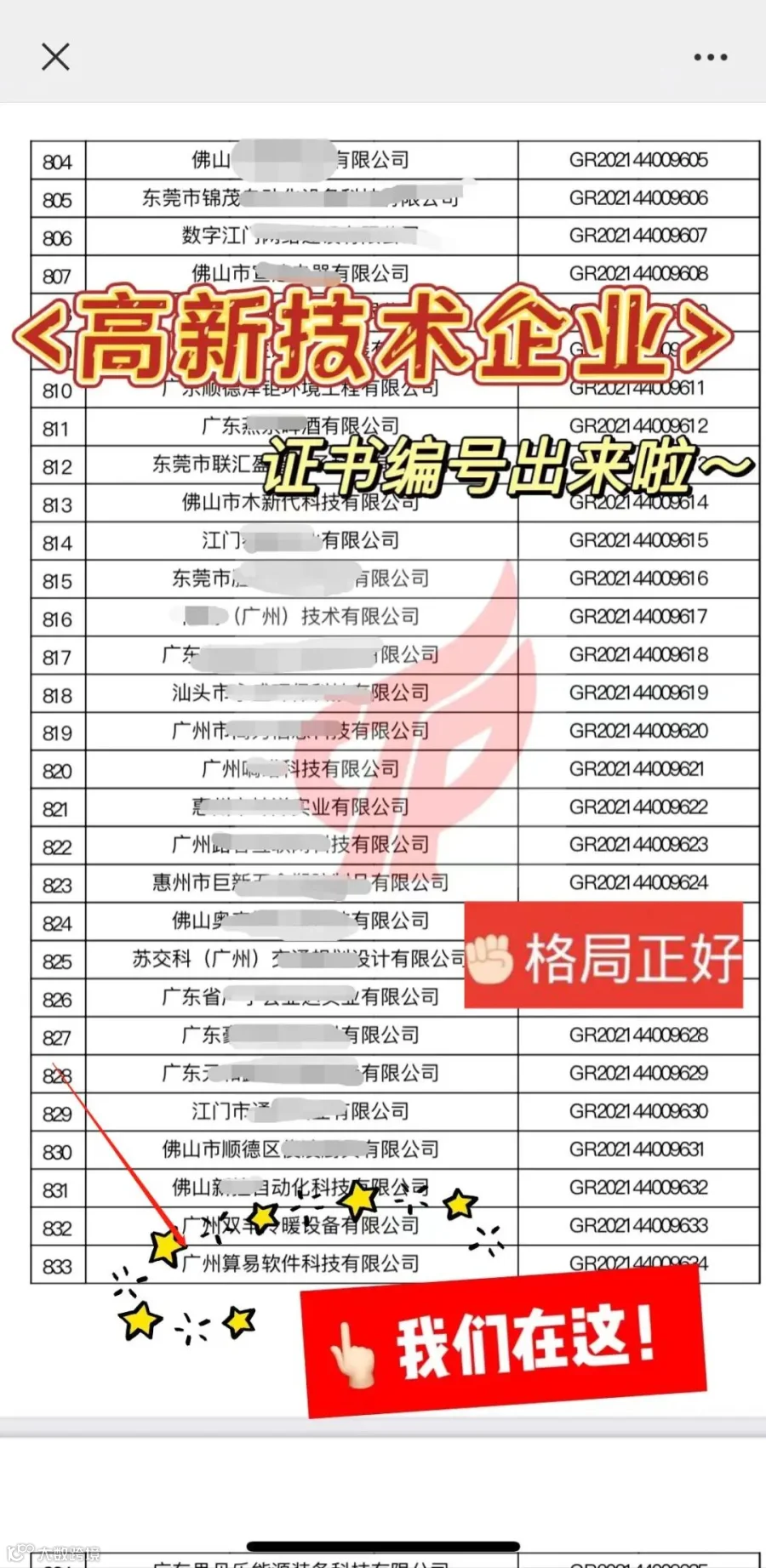 广州算易科技有限公司荣登榜单,这意味着公司成功通过高新技术企业认证!