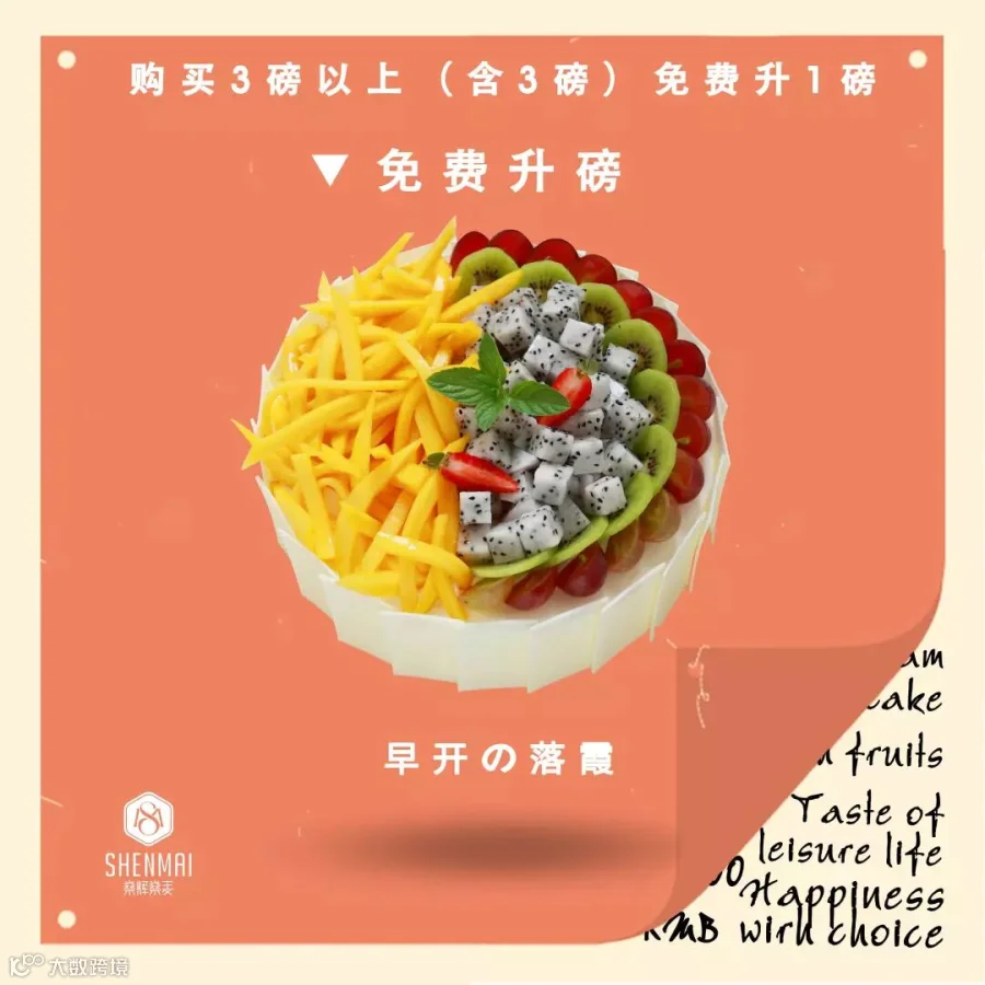 购买本款蛋糕3磅以上(含3磅)免费升1磅