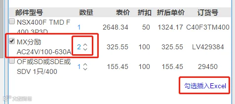 算易选型,搜索选好插入excel,然后导出来~