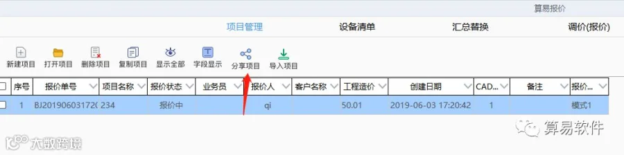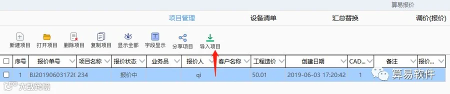 点击“导入项目”,把报价项目文件导进后,即可继续报价