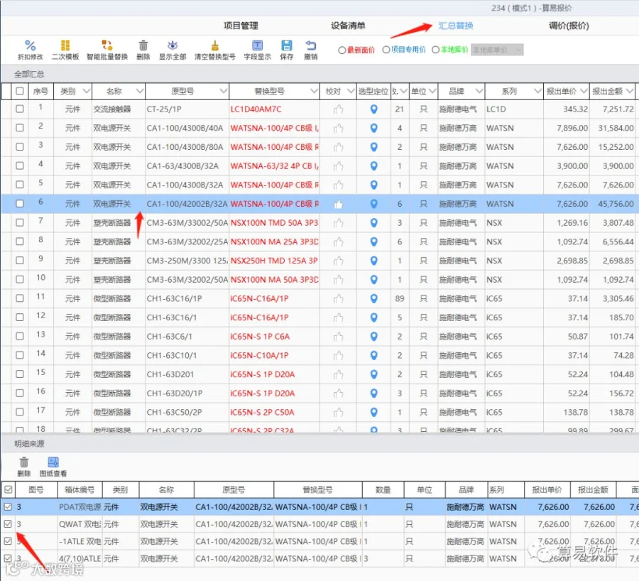 汇总替换界面,可针对元件所在箱柜,批量插入二次回路
