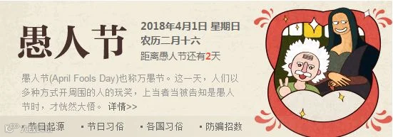愚人节(April Fool's Day或All Fools' Day)也称万愚节、幽默节,愚人节节期为公历4月1日,是从19世纪开始在西方兴起流行的民间节日,然而愚人节并未被任何国家认定为法定节日。