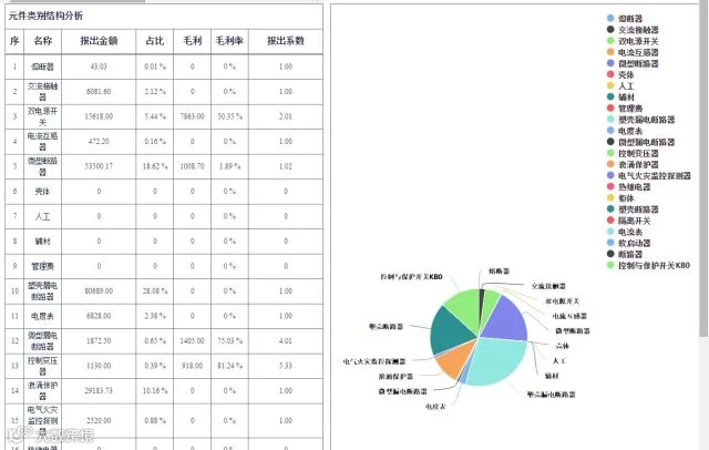 汇总替换之后,直接点击报表分析可以查看各个项下的报出金额、占比、毛利等数据。