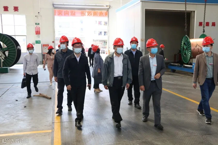 提问交流过后,考核组一行人参观检查了我司产品展示厅、中压车间、电线车间。
