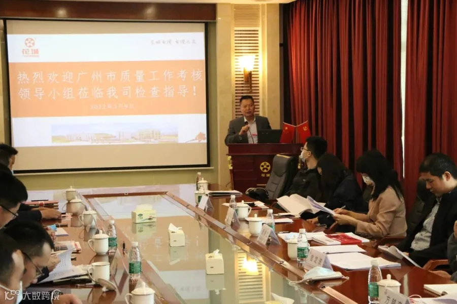 2022年3月9日,广州市质量工作考核领导组组长、市住建局一级调研员曾定波、从化区副区长周耿斌、区市场监督管理局局长陆广英等领导率队对我司质量工作情况开展实地核查,公司总经理谢名锋、常务副总吴传宗、总工程师刘北喜、生产副总覃静能等公司高层领导参加了会议并陪同检查。