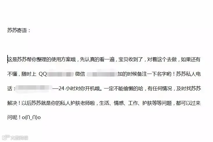 (伊的家护肤老师给VIP的针对性使用方案贴心寄语截图)