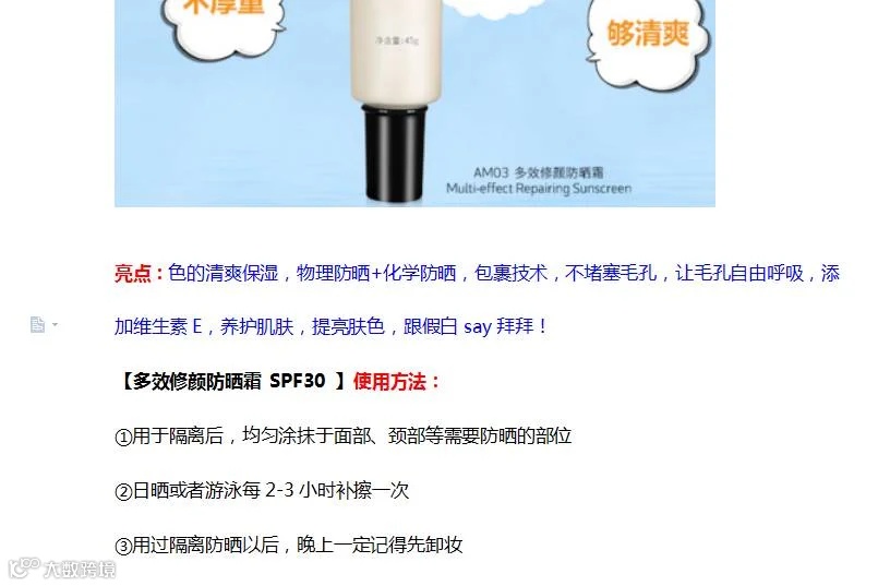 这是稍微权威的专家们的研究结论。其实从防晒霜的SPF值来讲,一个SPF值只能起到15-20分钟的防晒功效,在室内涂上SPF值为10的防晒霜就可以保持2至3个小时。而SPF值为30的防晒霜可以保持10个小时,特别是出汗或游泳之后防晒霜会被冲洗掉,及时涂抹更为重要。护肤 | 看你黑不溜秋的,一定不知道30SPF PA+++是神马?