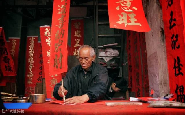 爷爷挥毫泼墨写春联