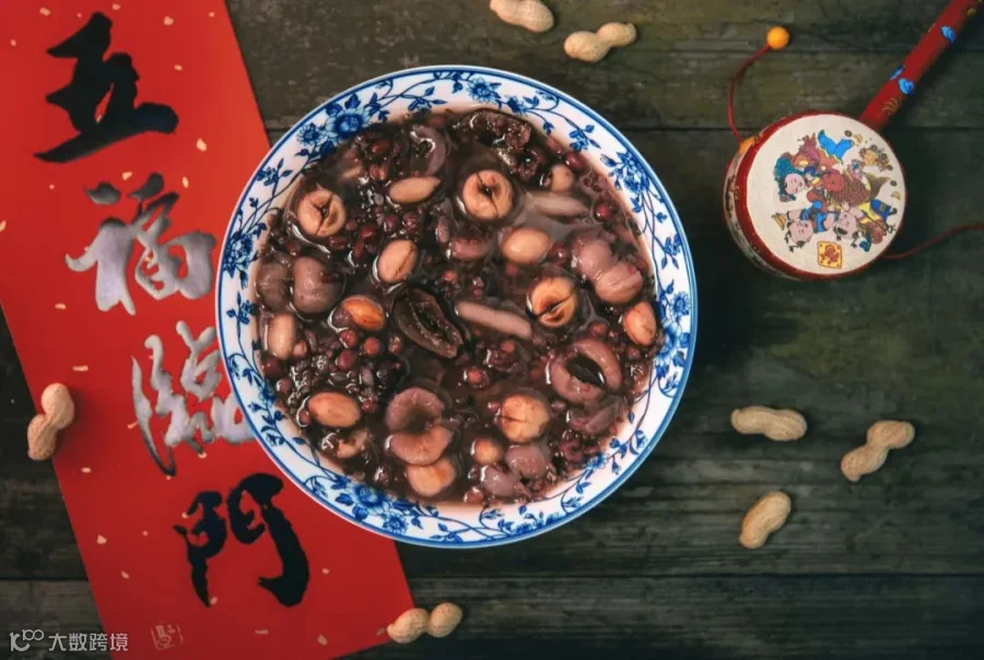 腊八粥又名七宝五味粥,一般由谷类、豆类多种食材熬制而成,既有着五谷丰登的好兆头,也是一种上佳的养生食物。全国各地因口味和物产的不同,具体的用料配方也不同。如陕北人还会加入各种干果、豆腐及肉;四川人分甜咸、麻辣两种,以黄豆、花生、肉丁、萝卜等煮成;在上海还有“细腊八”“粗腊八”之分。