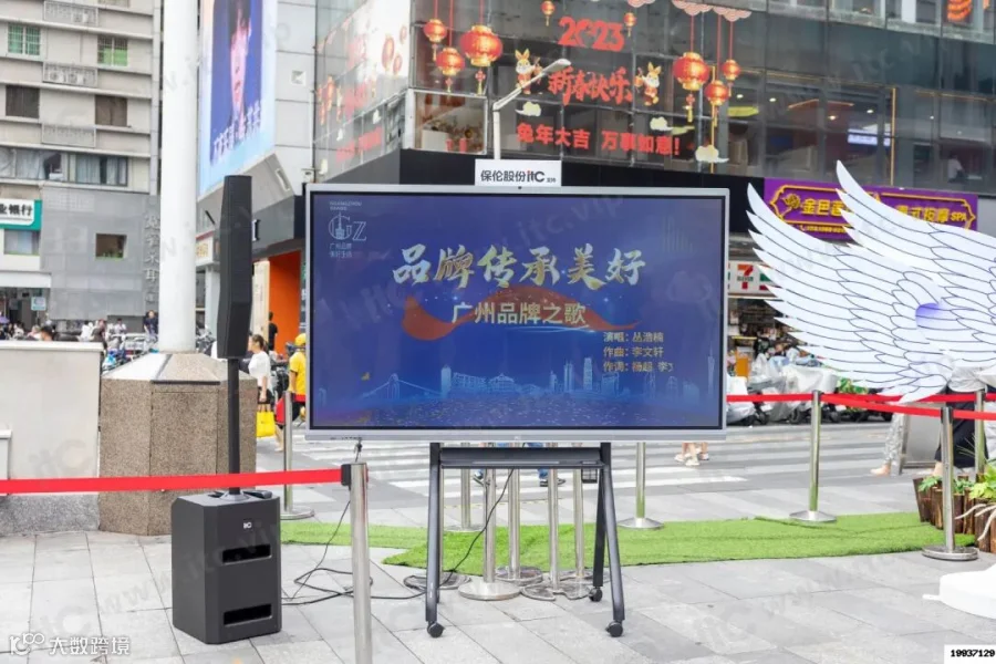 此次宣传活动的目的是在可沉浸、可体验、可消费的地标场景中,提升广州品牌的影响力,诠释品牌内涵。而右侧的“心型品牌墙”及品牌展示区,则展示了2023年“广州品牌”故事征集活动中脱颖而出的优秀品牌代表。