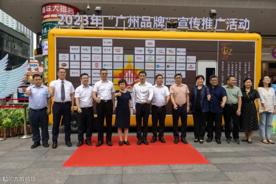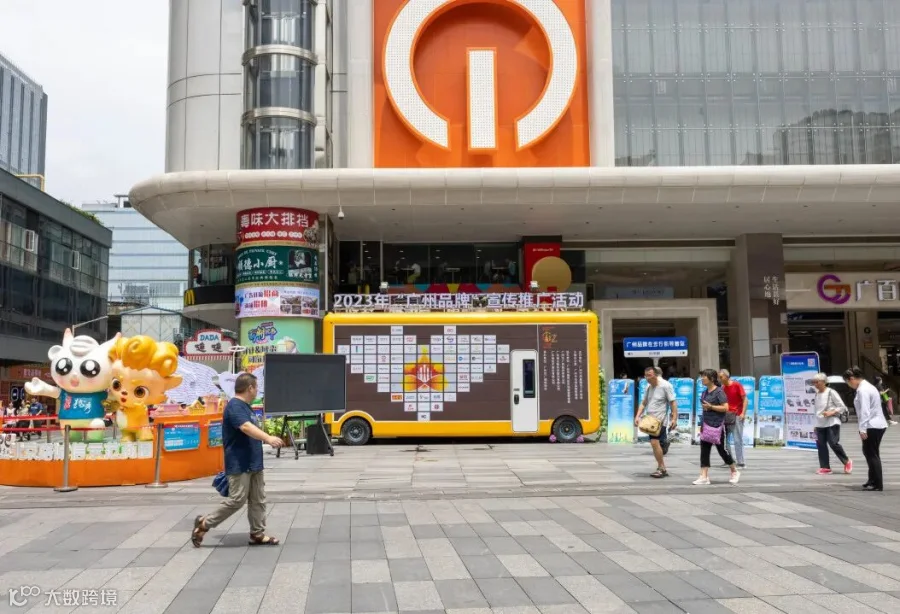 这辆黄色巴士是2023年“广州品牌”宣传推广活动的主角——广州市品牌高质量发展主题宣传车。