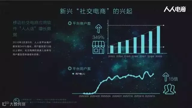 2016年3月至9月,人人店平台商户数实现349%增长,用户数实现15倍以上增长,社交电商的商家入驻率与用户关注度、成交数呈现快速增长态势。本地O2O类商户增长尤其突出。