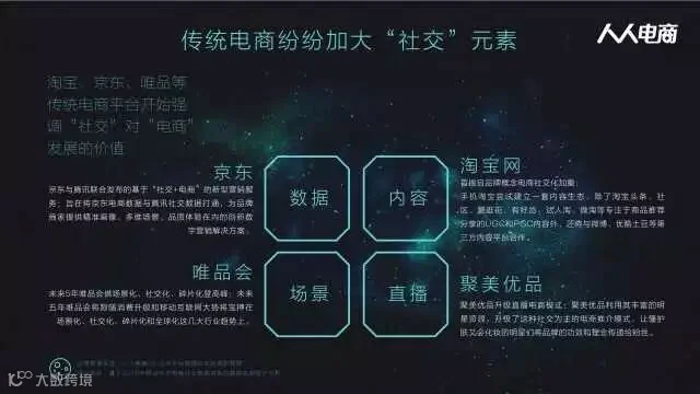 、唯品等传统电商平台开始强调“社交”对“电商”发展的价值。