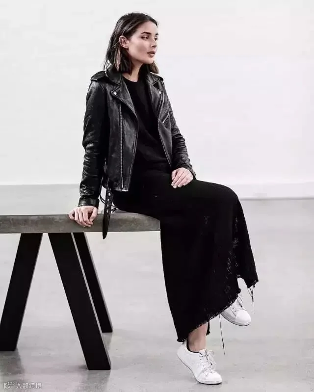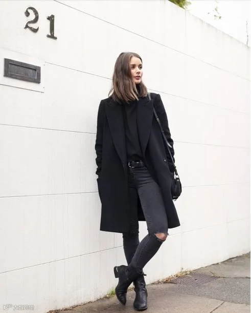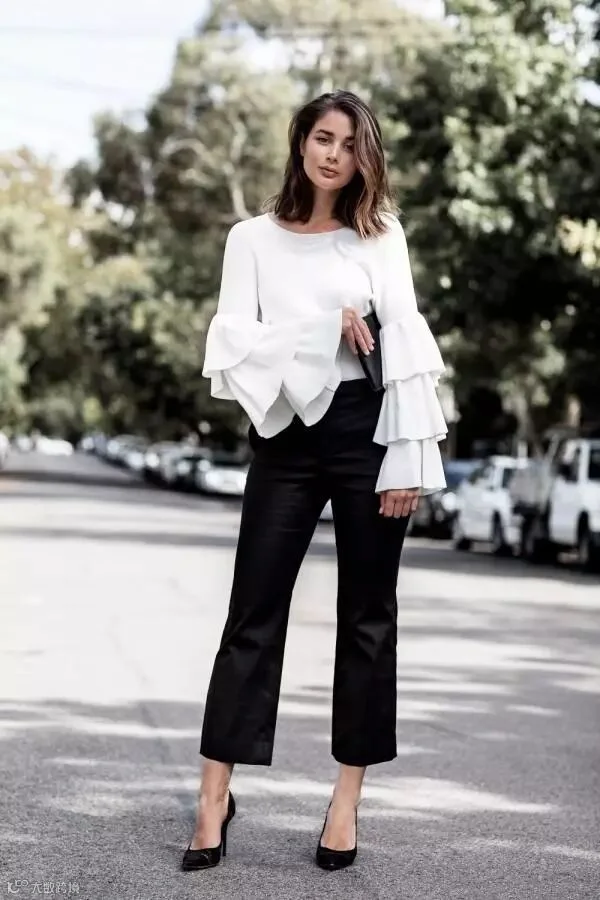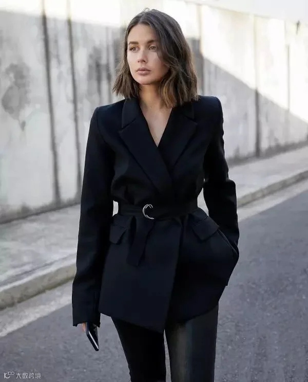 谁说胖胖的女生就不能穿短款外套?!这么说,是搞事情来着!!!像澳洲博主一样,选择黑色系裤装,加上不会过于绷紧的宽度,扎上个干练头,气质逼人!