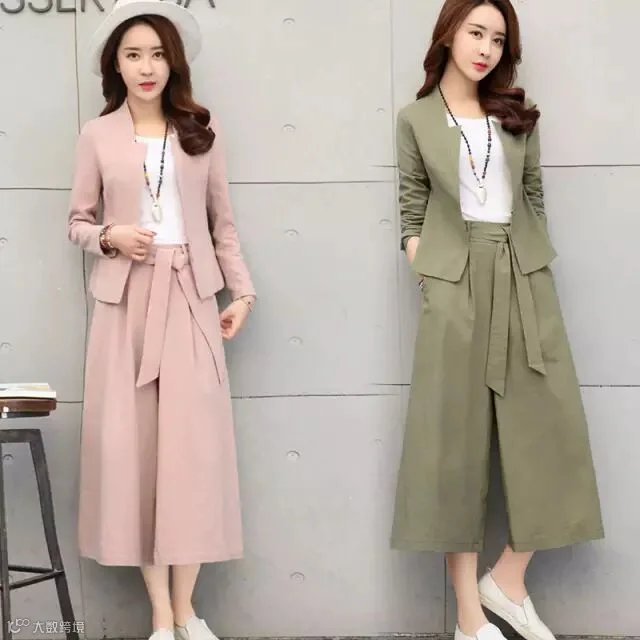 优质的棉麻面料透气性良好给人舒适的穿着体验,一粒扣的简约西装式开衫搭配阔腿裤很有文艺青年的情怀。