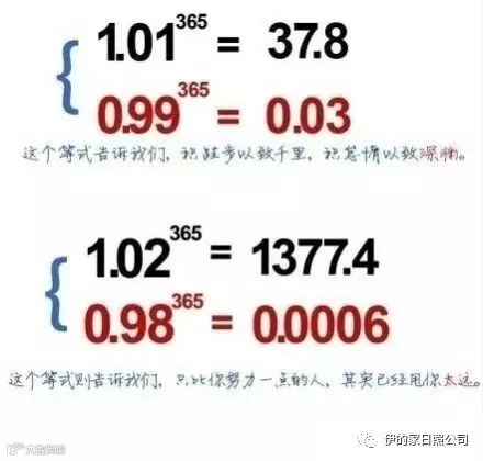 1.01的365次方,如果你每天进步一点点,一年以后,你将进步很大,远远大于“1”。
