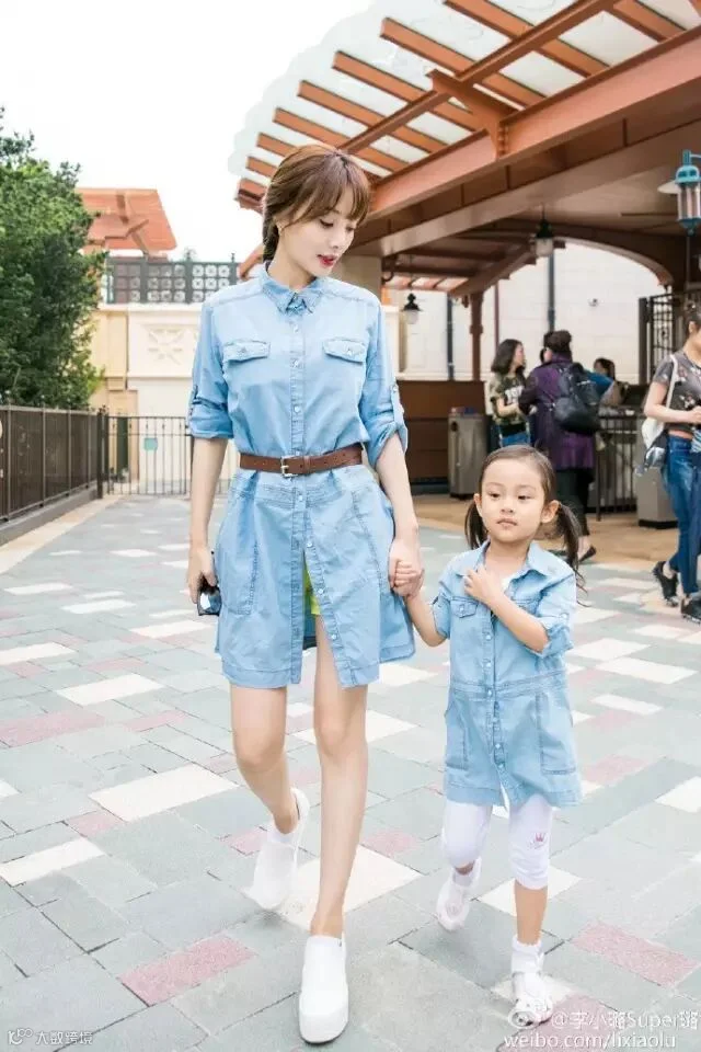 跟妈妈一起,一身连衣牛仔裙