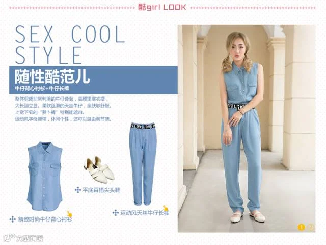 随性酷范儿:牛仔背心衬衫+牛仔长裤