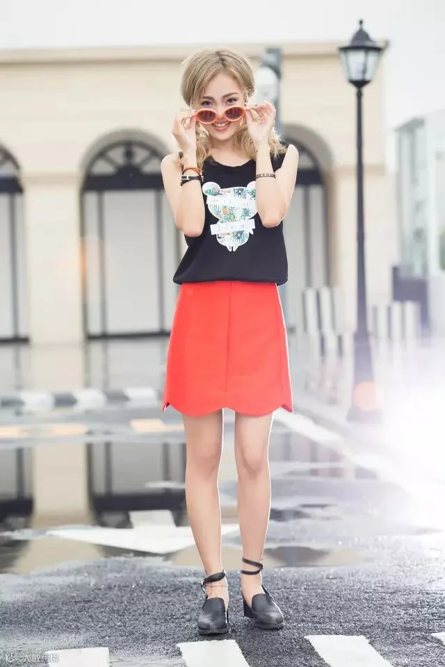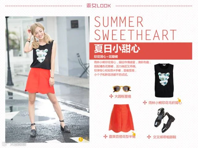 上衣的雨林小熊,添了几分趣味。加上夏日必备的半裙,注意哦裙摆是波浪式的呦,无论款式与色彩甩别的半裙N条街哦~这样的穿搭,亮眼又很甜~