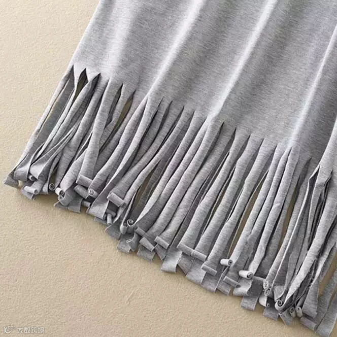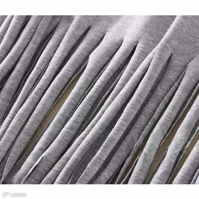 下摆的流苏边,随意的剪裁,自然卷曲的样式,立体感十足