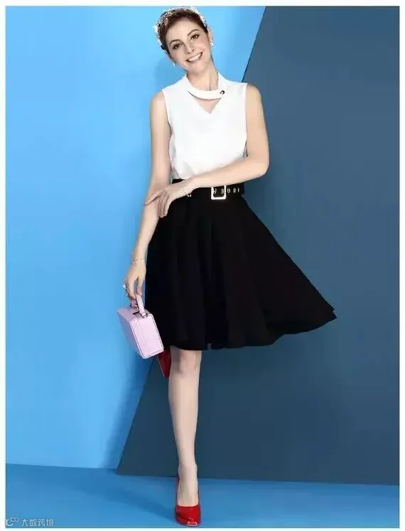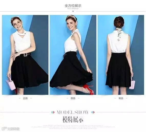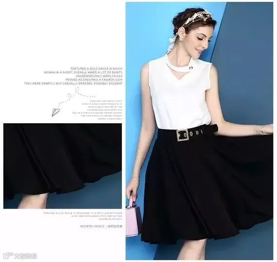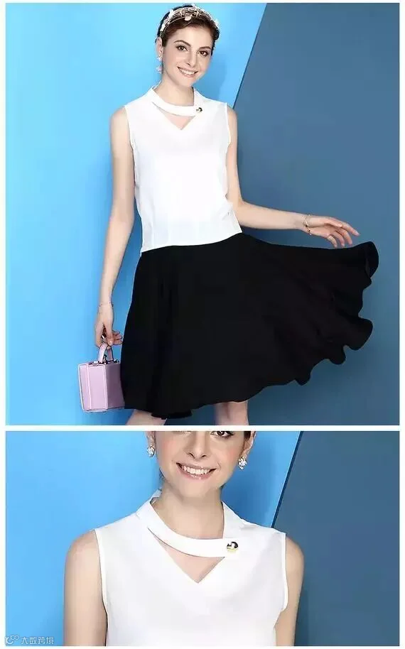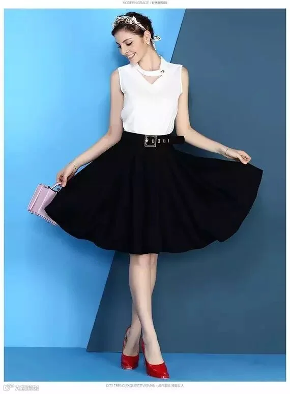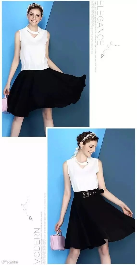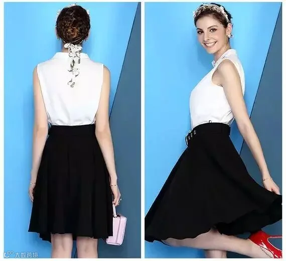 V领无袖上衣搭配纯色半身裙(119包邮)