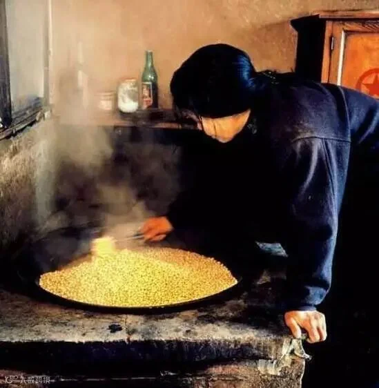 奶奶在烀酱豆,就是把黄豆泡好烀熟,一年里佐餐的农家大酱可少不了。