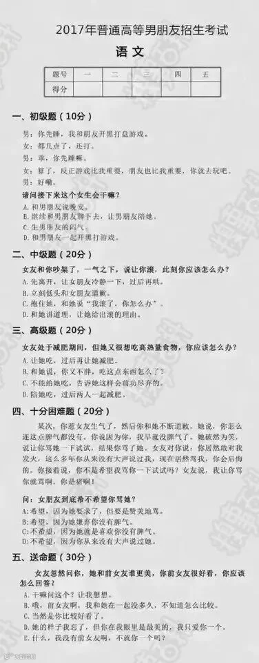 男朋友考试你及格了吗