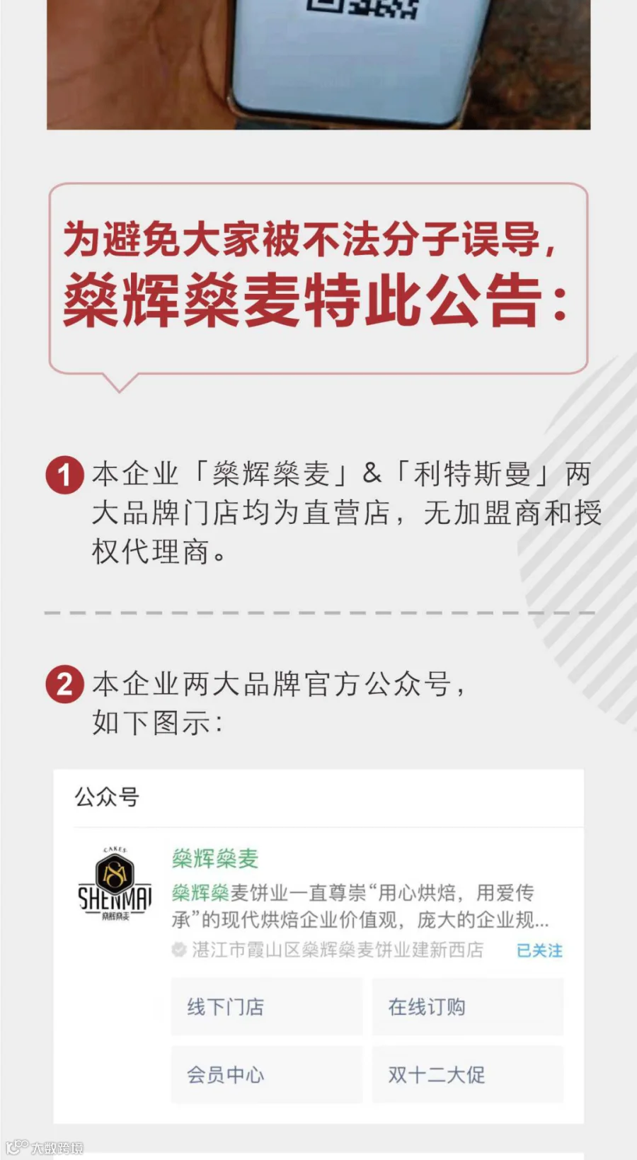 4.燊辉燊麦所有饼店均为直营店,不接受任何形式的加盟,请各位慎防受骗。