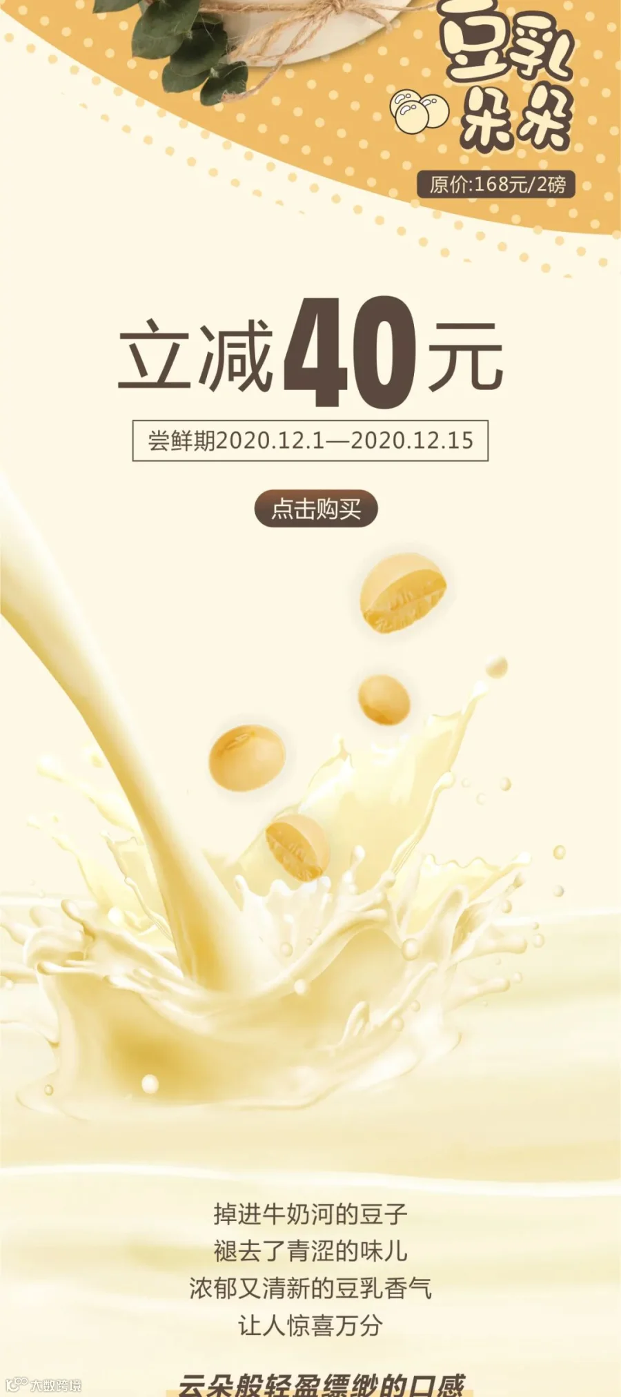 导读:▲如云朵般轻盈缥缈的口感入口即化,清新豆乳香流淌心间!▲12.1-12.15 尝鲜期立减40元!