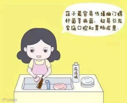 有数据显示,近50%的人体内存在致胃病的幽门螺旋杆菌,而这些细菌大多是家庭传播,筷子就是重要的传播渠道之一。