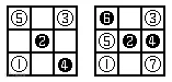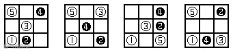 对方要是真的走了正中间,你仍然有赢的机会。你可以占住右上角的位置(如上图)。如果对方不幸走了剩下的两个角中的一个(上图左),你便能故技重施,再次取得胜利。只有对方选择了边上的位置(上图右),才能躲过这一系列的陷阱,最终变成平局。