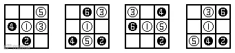 作为后行者,你遇到的往往是“先走中间”的经典开局。此时,千万别忘了,先占角仍然是一条金科玉律。如果你不慎走了某条边的位置,对方可就赢定了!对方可以向上面的第一幅图那样,在正右方下子应对,逼迫你把下一步棋落在正左方。此时,对方便可占据右上方的位置,同时产生出两条仅差一子的连线。右边三幅图则显示,如果你在角上应对,最终总会是一盘和棋。
