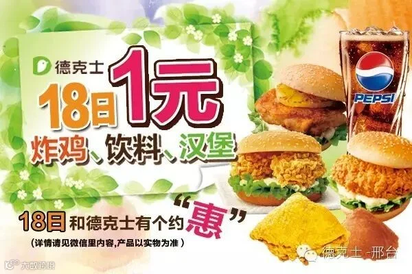 本月18日,持集享卡原价购买所有汉堡、脆皮炸鸡及碳酸类饮料+1元即可送您第二份哦!~