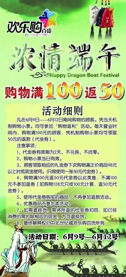 欢乐购百货世纪城店,浓情端午购物满100返50