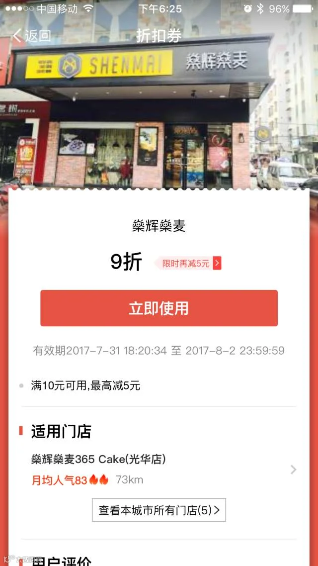 口碑支付9折+限时减