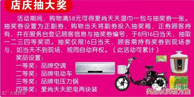 天天超市店庆抽大奖,六店同庆实惠特价狂欢!