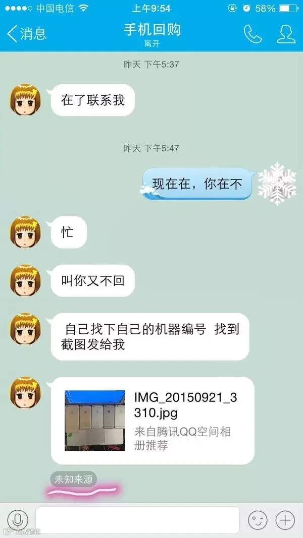 10 月 16 日,一个没留神,怕是已经遭骗了,抵抗到现在,我也是心力交瘁啊,稍稍放松警惕,就容易落入骗子陷阱。上次说到骗子不肯加我 QQ,用小号冒充客服,这次她通过了我的好友请求,要我在线找她,并让我找到自己手机的编码,好谈回购。我想骗子终于放弃我了,稍不留神,就点开了链接,然后骗子就不回话了,我也是内心拔凉拔凉的,如有人按照我的帖子抵抗到这一步,请告诉我后面骗子还会干什么,我自己先哭会去……