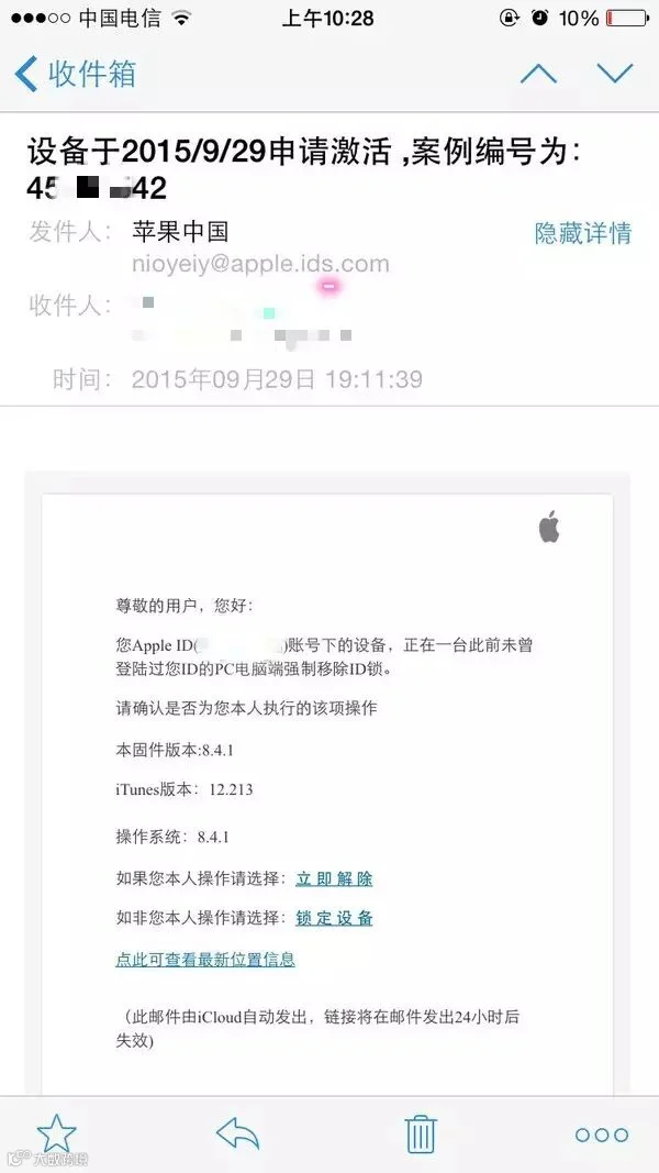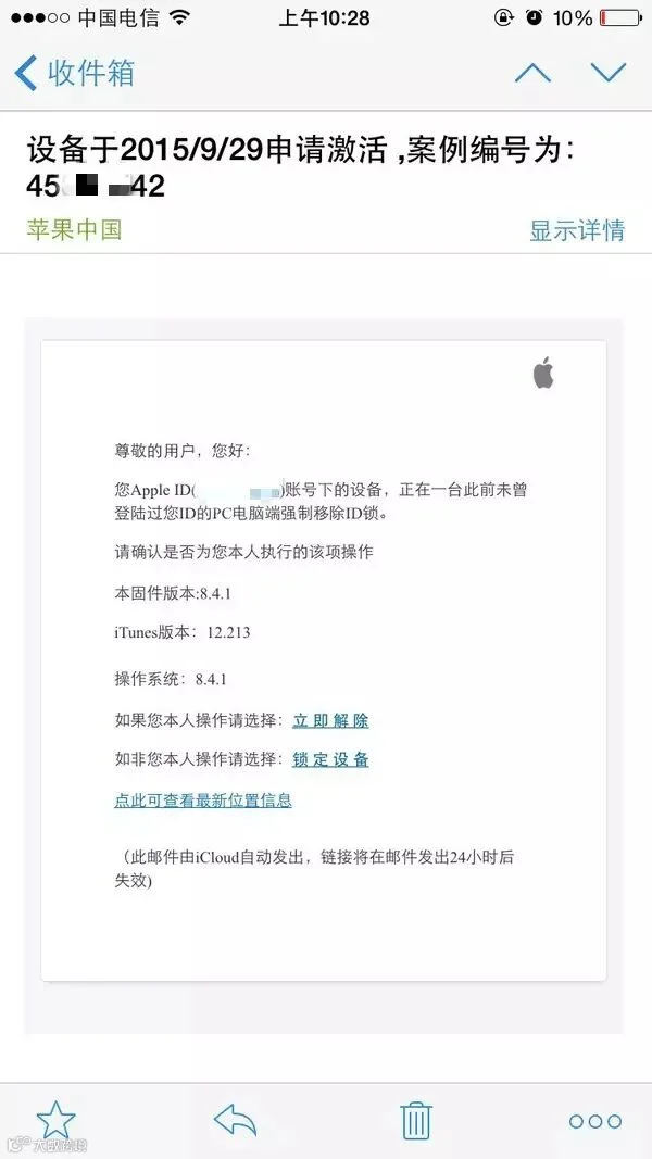 昨天手机被盗后去了派出所备案,今天收到苹果官网发来的邮件!请万能的知乎支招!期限只有1天……截止8月16日下午。