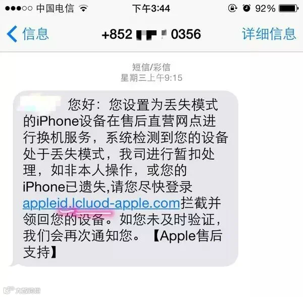 后缀竟然是 apple ,问题在于 ID 多了个 s 。依旧不理。骗子开始发短信给我: